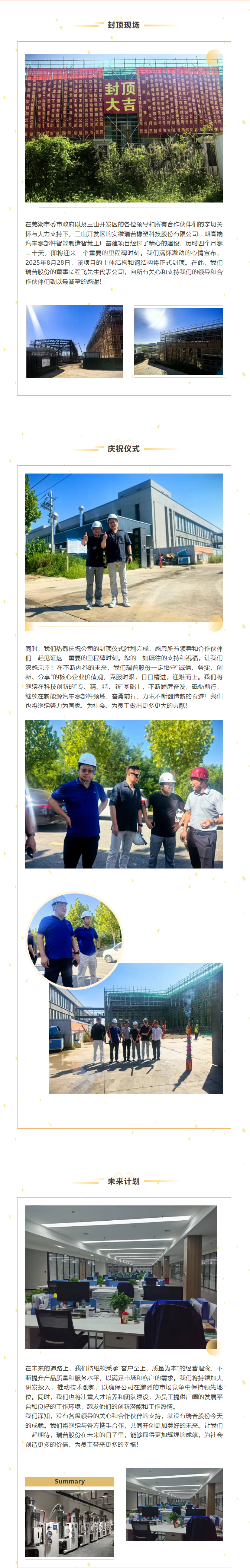 熱烈慶祝瑞普股份蕪湖總部二期智能制造智慧工廠封頂大吉